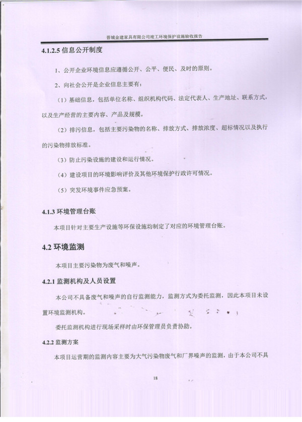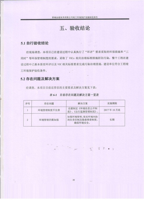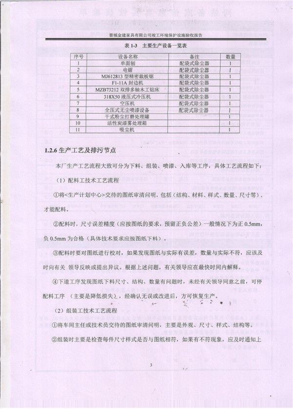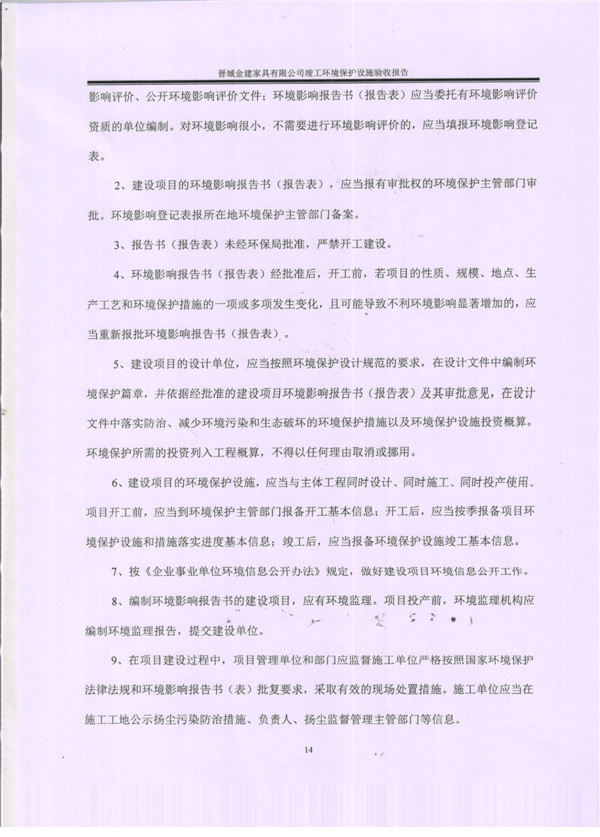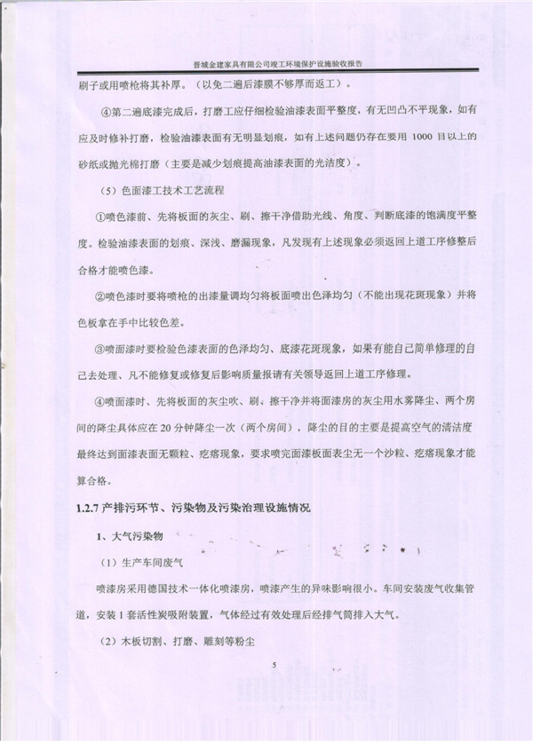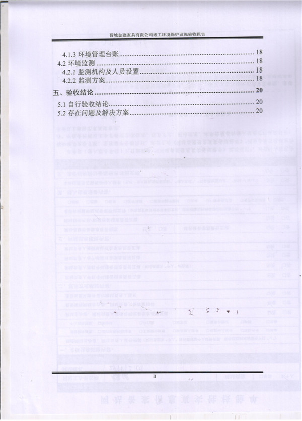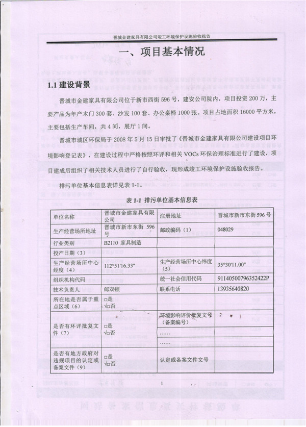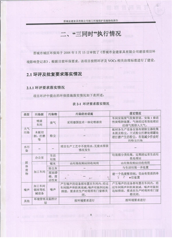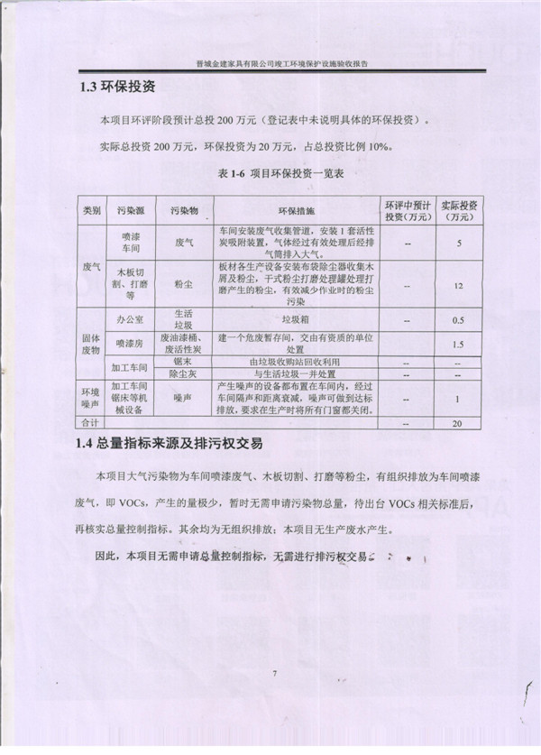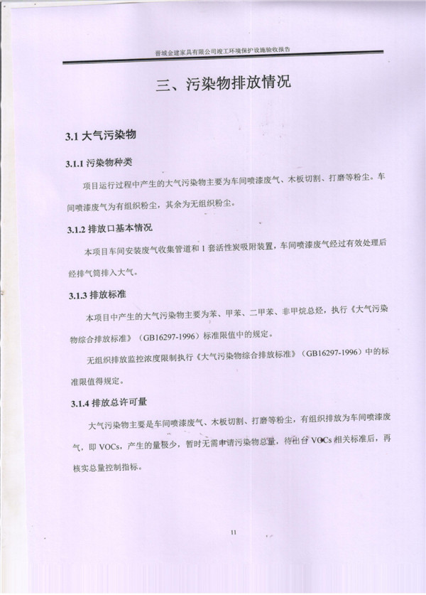晉城市金建家具有限公司竣工環境保護設施驗收報告
