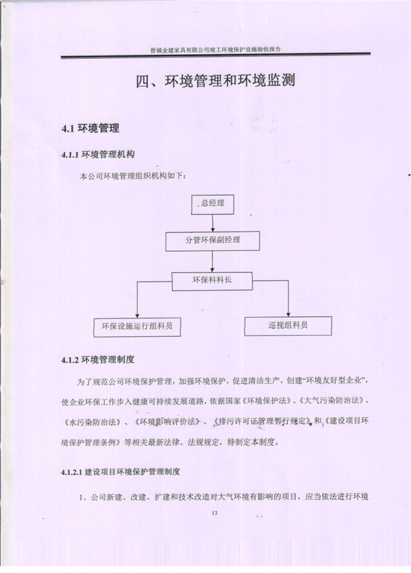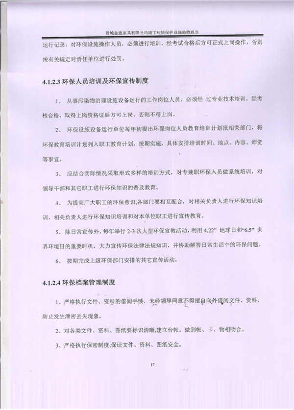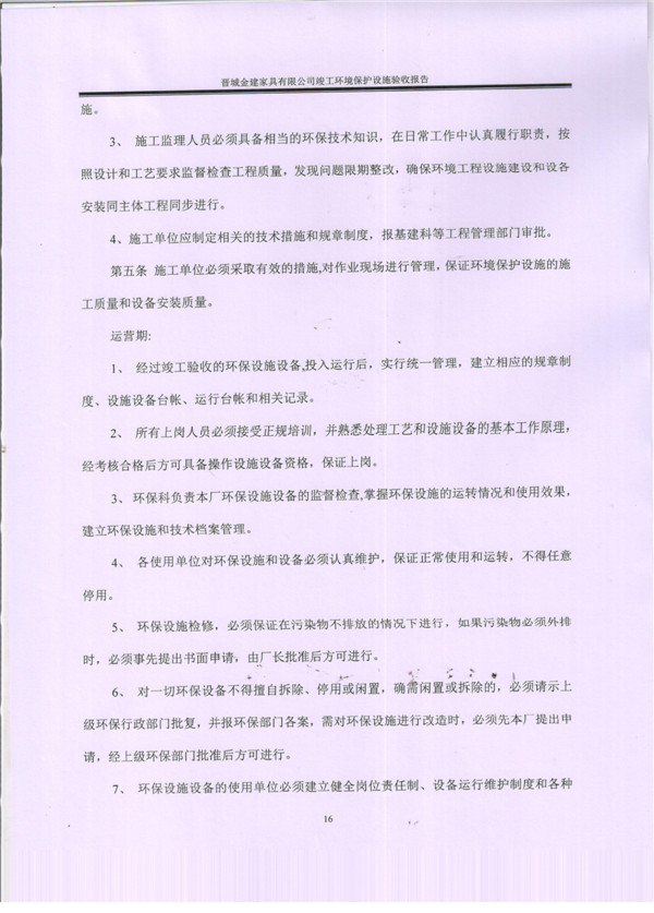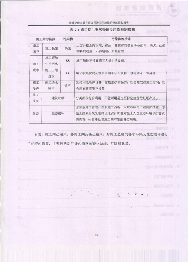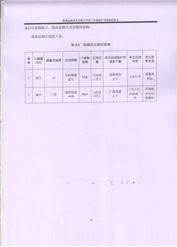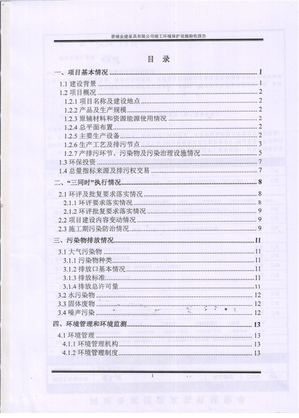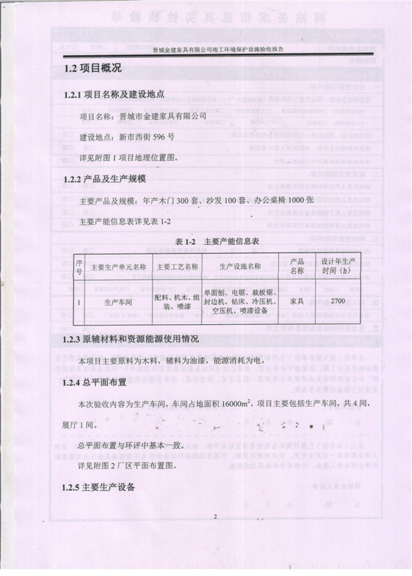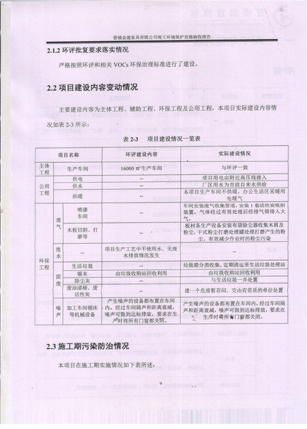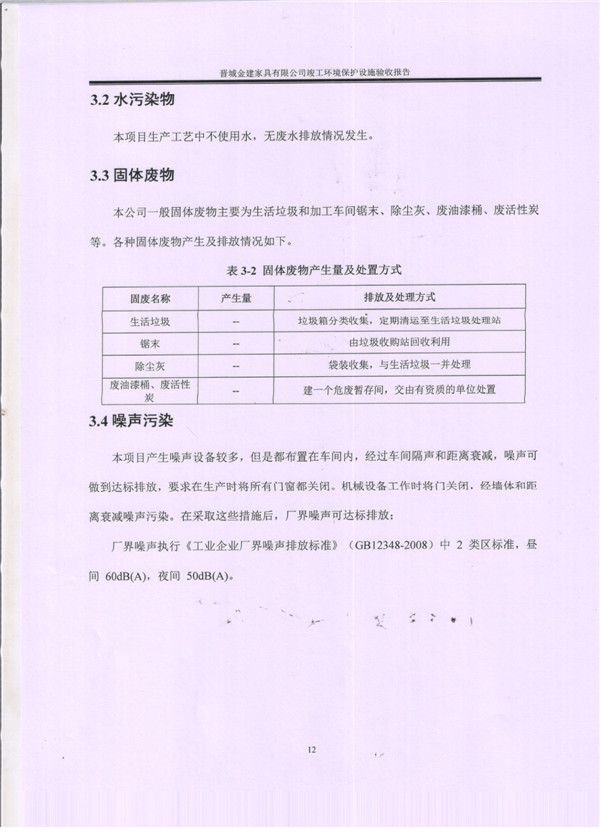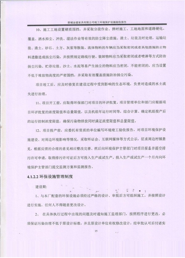 晉城市金建家具有限公司竣工環境保護設施驗收報告